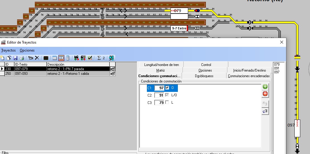 Esto anterior es solo a título de información, ya que tal como está el AC, no parece que sea la causa que no se active el trayecto 097>079, pero repara el trayecto para tenerlo correcto.